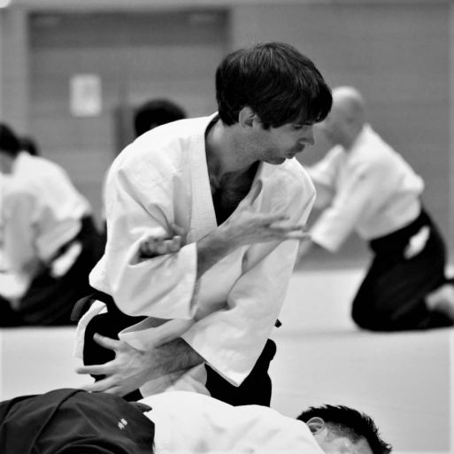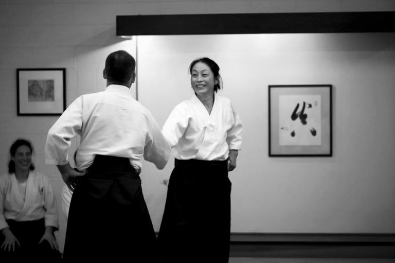 合気道は決して簡単な武道ではありません。しかしやりたいと思う人なら誰にでも出来ます。稽古中は山も谷もありますし、疲れ果てる時も、また楽しくてこの上ない充実を感じる時もあります。いずれにしてもこの長い合気道の「道」を進んで行くと、さまざまな出会の中で目覚め、自己を学びまた判断力を磨きながら自分の周り、環境と共に成長していく過程を体験することが出来ると思います。